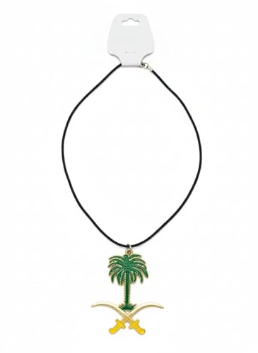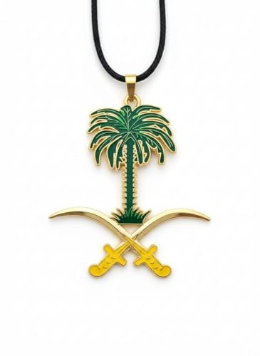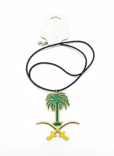Generic - مدالية جميلة بشكل انيق ورائع - علي شكل سيفسين ونخلة معدن - دلاية لون ذهبي وأخضر - SA CAR