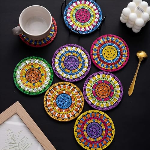Generic - مجموعة جميلة من 6 قواعد أكواب خشبية مع حامل مصاحب، مصممة بشكل مثالي لأكواب الشاي والقهوة، مما يعزز تجربة المشروبات الخاصة بك بأناقة