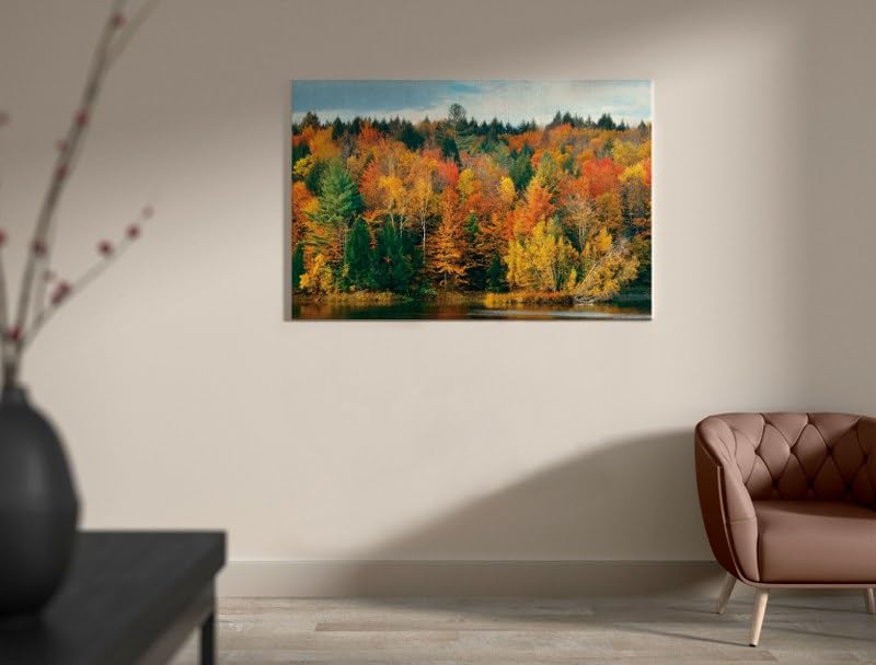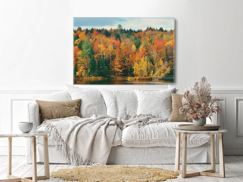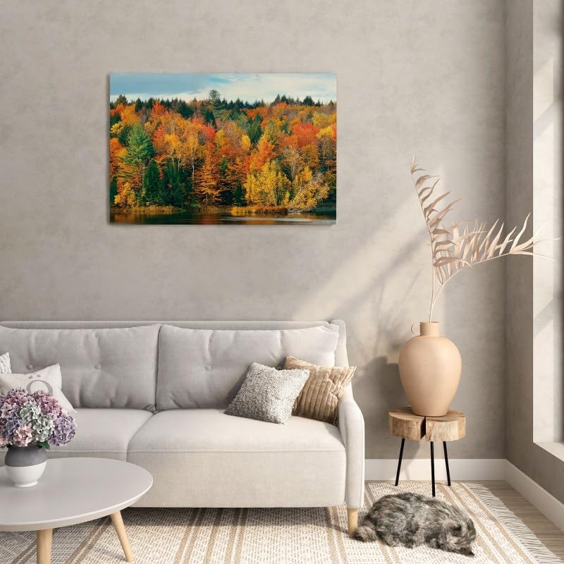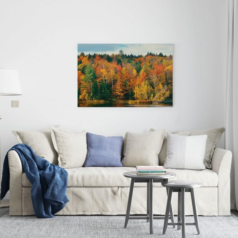 Home Gallery - لوحة فنية جدارية قماشية جميلة باللون الأصفر والأحمر والبرتقالي والأخضر والأشجار العشبية 60 × 40 سم