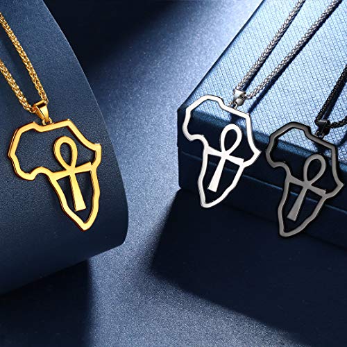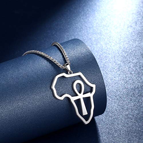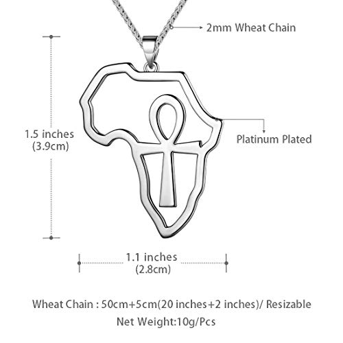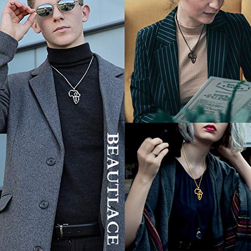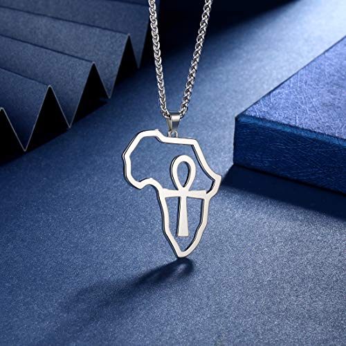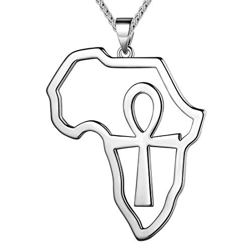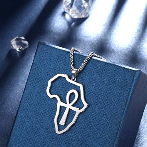 beautlace - سلسلة على شكل خريطة افريقيا من بيوتيليس - حلق ببريمة - خواتم فضية - ذهب عيار 18K - دلاية مطلية بالاسود المؤكسد مفتاح الحياة - خاتم مجوهرات بتصميم افريقي للرجال والنساء معدن زركونيا مكعب متعدد