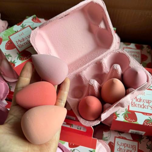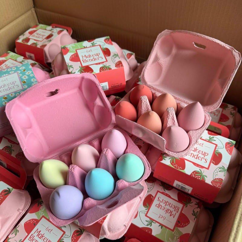 Generic - علبة بيوتي بليندر 6 إسفنجات بألوان جذابة – علبة بيض كيوت لتوزيع مثالي للميكب