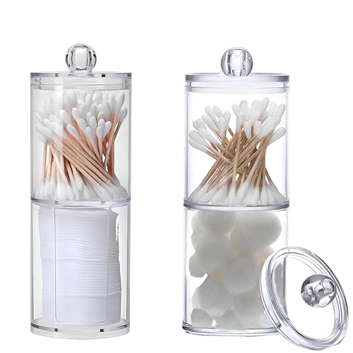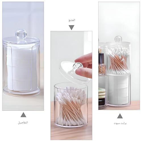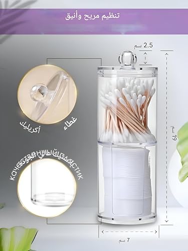 Generic - حاوية مستحضرات التجميل - وعاء تخزين شفاف مزدوج الأرضية مصنوع للوسادات القطنية والممسحات والمناديل ومستلزمات التجميل خفيفة الوزن مما يوفر تنظيمًا أنيقًا وتقليل الفوضى على أسطح الزينة