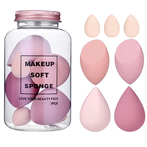 Generic - 7 قطع من مجموعة اسفنج مزج المكياج من اوكرز، لمزج كريم الاساس ومستحضرات التجميل مع خزان، اسفنجة ناعمة خالية من اللاتكس لمزج البودرة السائلة، للاستخدام الجاف والرطب، متعددة الالوان (بينك)