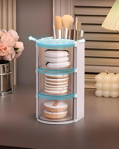 Generic - منظم دوار لأدوات المكياج والتجميل من الأكريليك بثلاث طبقات – لحفظ فرش المكياج، ووسائد القطن، وأدوات التجميل، واكسسوارات الشعر، وأعواد التنظيف