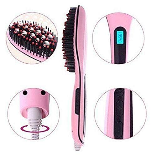 Other - مشط كهربائي لتمليس الشعر مع شاشة ال سي دي من بيوتي ستار - زهري، سيراميك