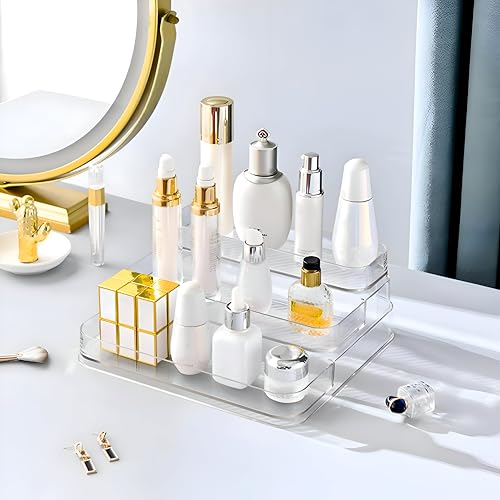 Generic - منظم مستحضرات تجميل من الاكريليك متعدد المستويات لزجاجات العطور والاكسسوارات والمكياج يحمل ما يصل إلى 12 برطمان صغير أو زجاجة، شفاف