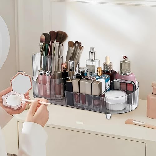 Generic - منظم تخزين لمستحضرات التجميل، منظم مكياج دوار مع أقسام متعددة لأحمر الشفاه والفرش ومنتجات العناية بالبشرة واكسسوارات الشعر