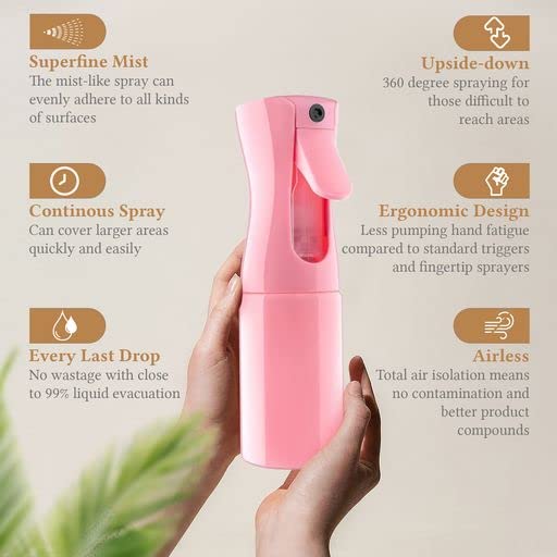 Beauvia - زجاجة بخاخ فارغة من بوفيا - زجاجة بخاخ مستمرة فائقة الدقة لتصفيف الشعر والعناية بالبشرة - زجاجة بخاخ للنباتات - زجاجة بخاخ رذاذ ناعم للتنظيف والكي والمزيد - 200 مل (بينك)