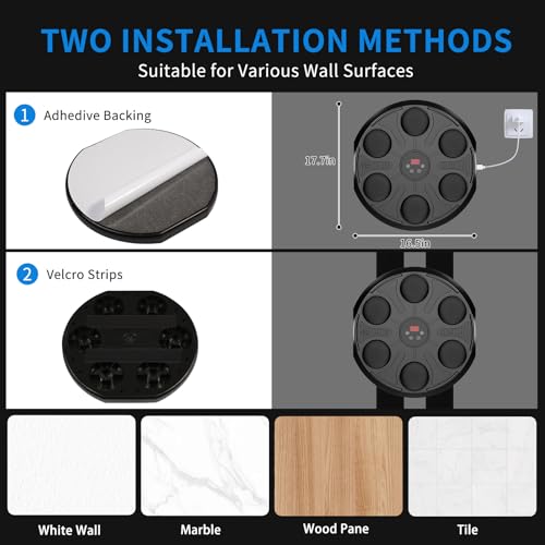 - سهلة التركيب وموفرة للمساحة: تم تصميم آلة اللكم الموسيقية المثبتة على الحائط للأسطح الملساء مثل الرخام أو البلاط ولا تتطلب أي ثقب، مما يوفر مساحة الأرضية. يأتي مع غراء ايفا قوي على الوجهين لتركيب ثابت وارتفاع فيلكرو قابل للتعديل، مما يجعله مناسبًا للمستخدمين من جميع الأعمار.