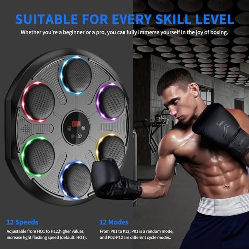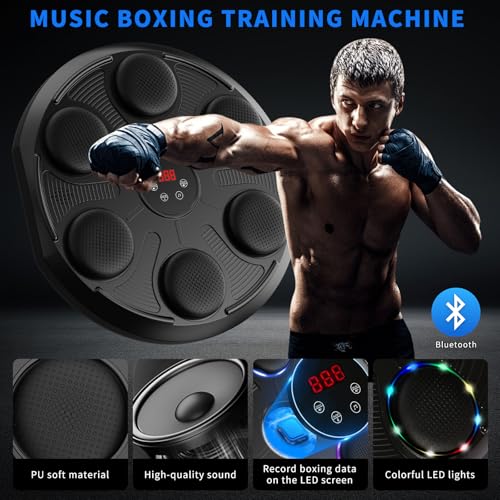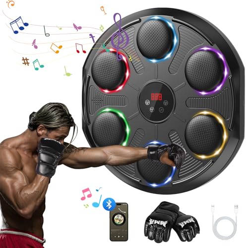 Beauyist - الة ملاكمة موسيقية من بيويست، الة ملاكمة مطورة 2025 تثبت على الحائط للبالغين، الة تدريب الملاكمة الذكية بلوتوث مع قفازات، معدات الملاكمة للتمرين على هدف الملاكمة للمنزل وصالة الالعاب الرياضية والنادي