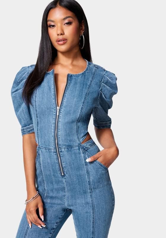 bebe - بيبي سالوبيت جينز بساق مستقيمة وسوستة امامية وفتحات جانبية مقاس 8 لون ازرق دينيم مقاس M