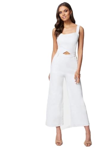 bebe - بيبي سالوبيت جينز بارجل واسعة بفتحات جانبية 6، لون ابيض دينيم