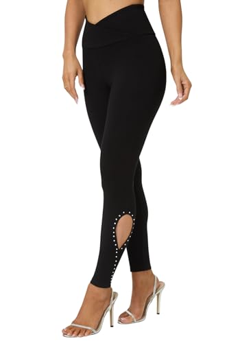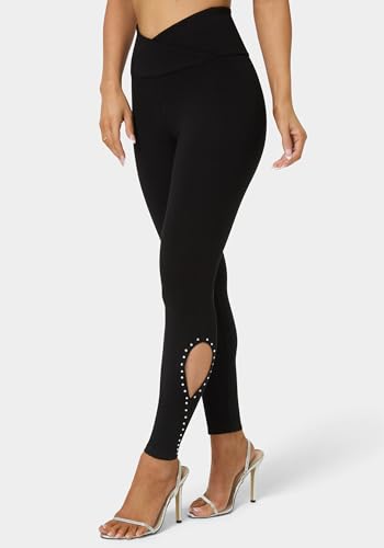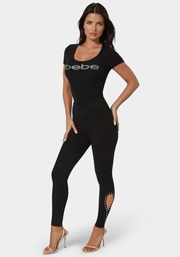 bebe - بيبي بنطلون لجينجز عالي الخصر مرصع باحجار الراين للنساء