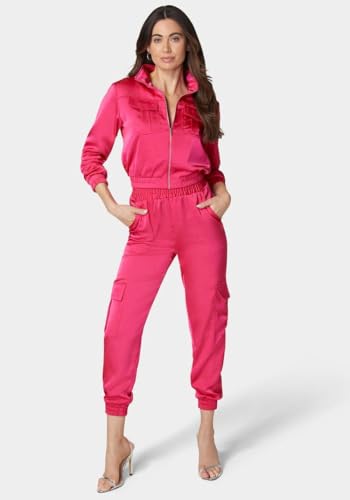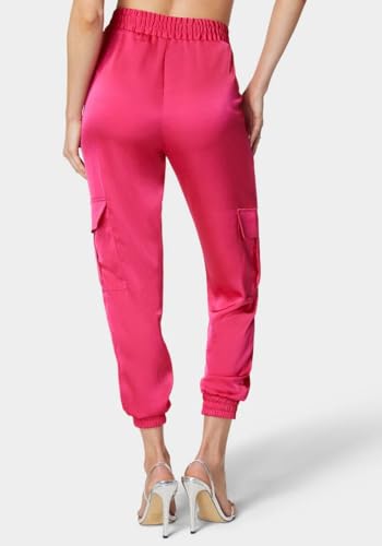 bebe - بيبي بنطلون رياضي كارجو باستك عند الخصر للنساء، مقاس XL، فوشيا