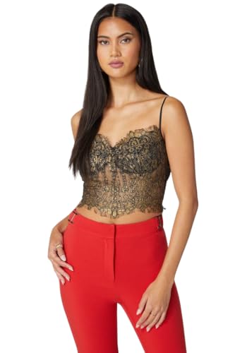 bebe - توب ضيق من نسيج التويل بلون متباين للنساء من بيبي