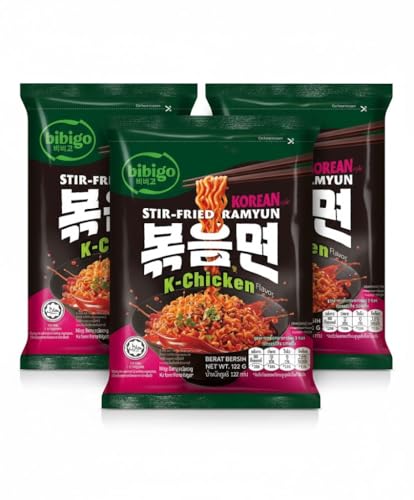 Generic - 3 * 122 جم راميون مقلي كوري بنكهة الكيمتشي من بيبيجو - 122 جم