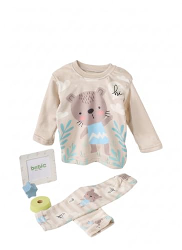 BEBIC - طقم بيجامة للأطفال، ملابس للأطفال من بيبيك بلوزة بأكمام طويلة وبنطلون بطبعة دب لطيف للأولاد والبنات، ملابس نوم من القطن الناعم