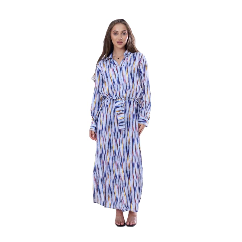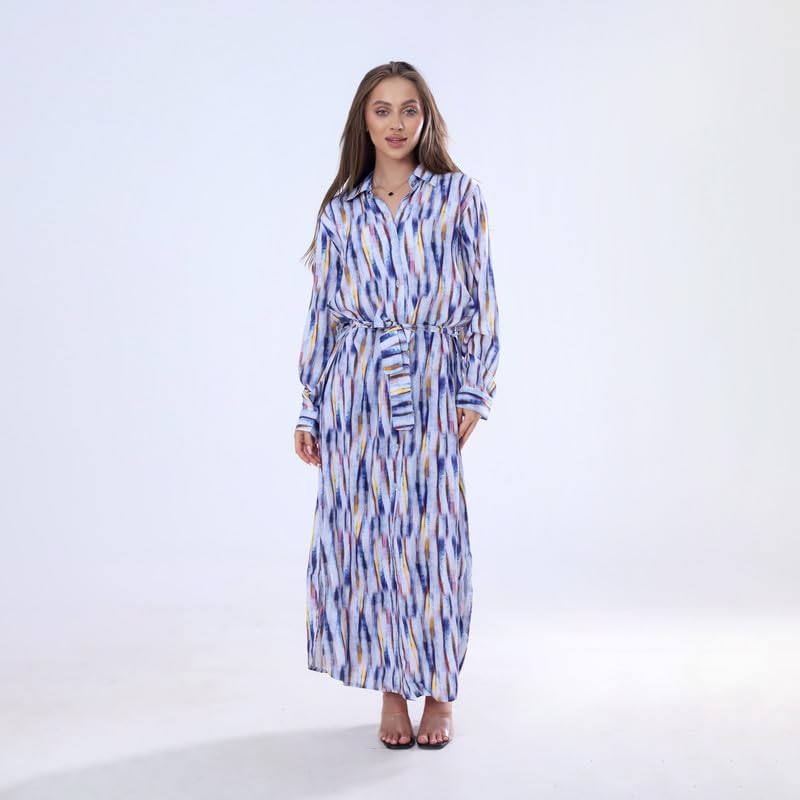 BEBO - BEBO فستان طويل أكمام طويلة مع حزام نسائي