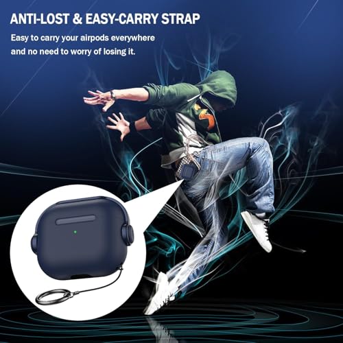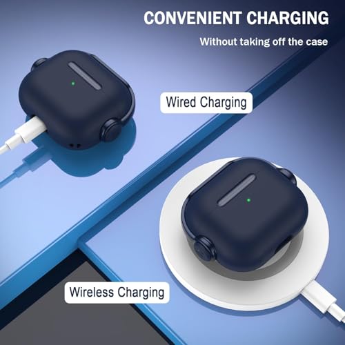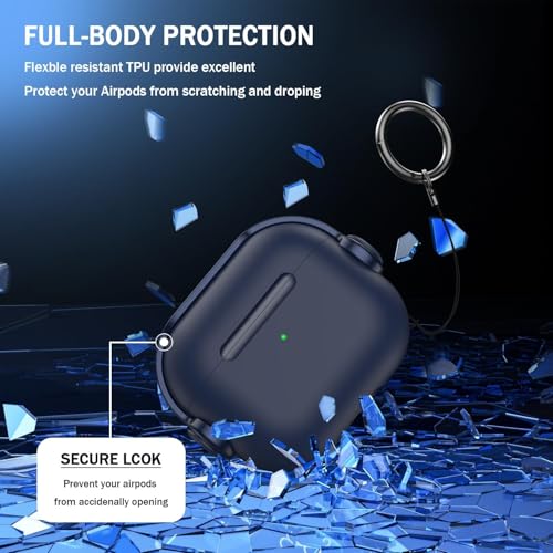BecaQ - جراب حماية متوافق مع سماعات ايربودز 4 مع قفل، جراب حماية لسماعات ايربودز الجيل الرابع، غطاء خطاف سلسلة مفاتيح لجراب ايربودز 4 من بيكاك (أزرق، ايربودز 4)