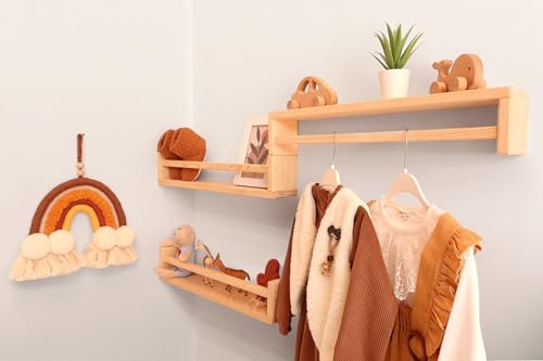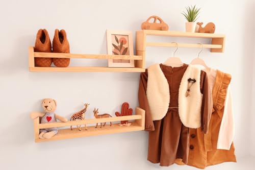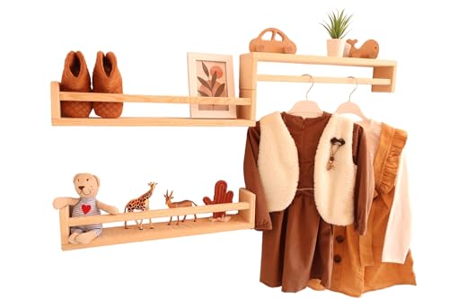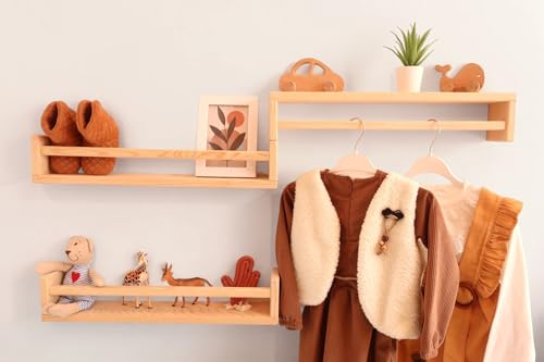 Becbece - مجموعة ارفف خشبية تثبت على الحائط لغرفة الأطفال من مونتيسوري مكونة 3 كتب المعيشة وغرفة النوم والمطبخ والحمام بعرض 50 سم وارتفاع 10 وعمق 8