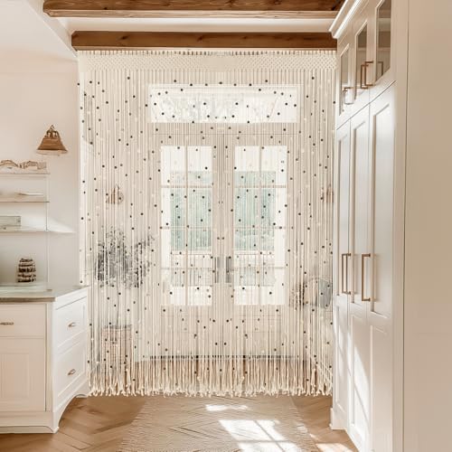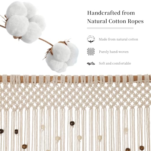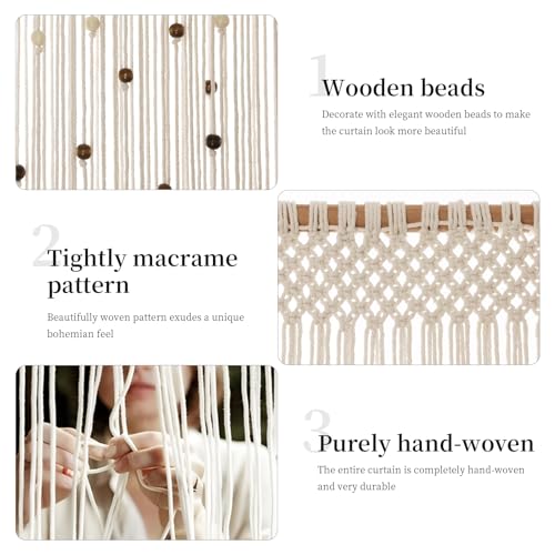 - 【جودة ممتازة】 مصنوعة من حبل قطني عالي الجودة وخرز خشبي، تتميز ستارة المكرمية البوهيمية هذه بجاذبية بصرية ومتانة. يبلغ مقاسها 79 × 35 انش، وتتميز بتفاصيل منسوجة دقيقة للحصول على نمط فريد.