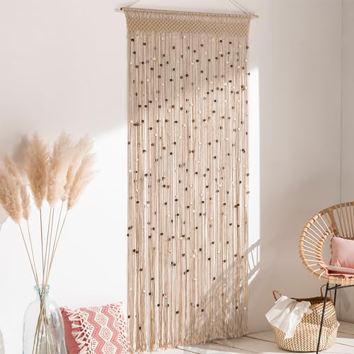 - 【جودة ممتازة】 مصنوعة من حبل قطني عالي الجودة وخرز خشبي، هذه الستارة المطرزة ليست مذهلة بصريًا فحسب، بل صُممت أيضًا لتدوم طويلاً. يبلغ مقاسها 2 متر × 89 سم، وتتميز بتفاصيل على شكل مكرمية لإضفاء لمسة مميزة أنيقة وفريدة.