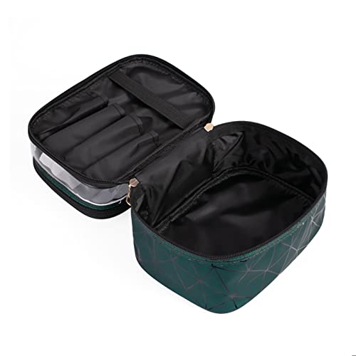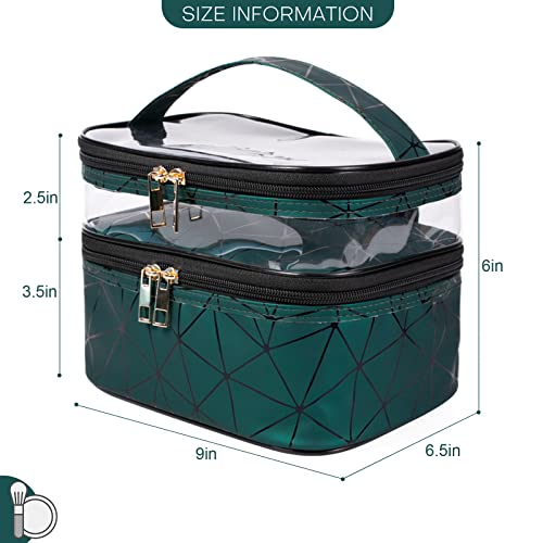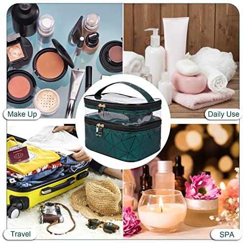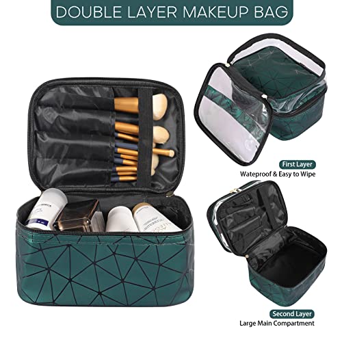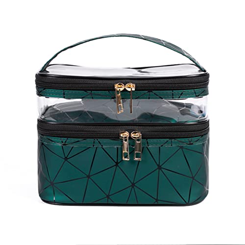 BECHAEO - شنطة مستحضرات تجميل للسفر من بيتشايو سفر مزدوجة الطبقات محمولة مقاومة للماء لتنظيم المكياج وادوات الزينة للنساء لون اخضر ماسي بلاستيك