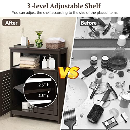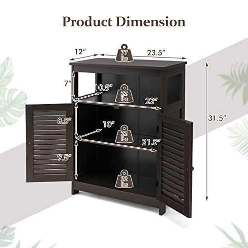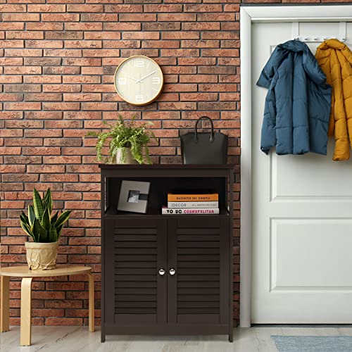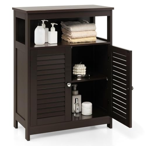 BECOMFORT - خزانة تخزين للحمام من بيكومفورت، منظم تخزين للحمام قائم بذاته مع أبواب غالق مزدوجة ورف قابل للتعديل، خزانة أرضية خشبية متعددة الأغراض للحمام وغرفة المعيشة والمدخل (بني)