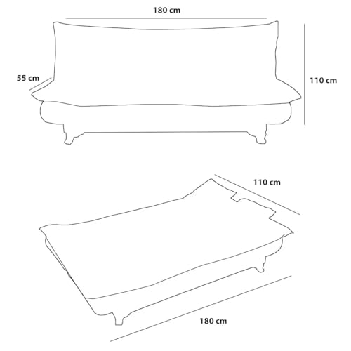 Generic - اريكة سرير بتصميم بدون ذراعين، خشب موسكوفي راتان، بيج غامق، 3 مقاعد، 185 × 115 × 80 سم، وسادتان