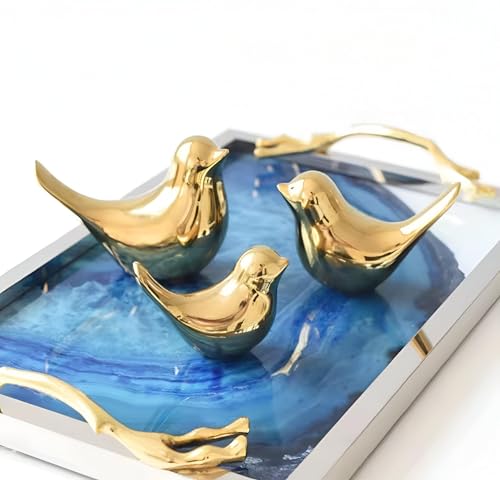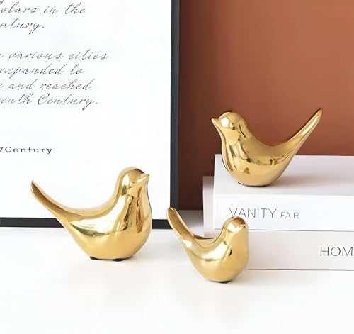 Generic - زينة لغرفة النوم - تماثيل طيور من السيراميك الذهبي لديكور المنزل العصري، مصنوعة لإضفاء إشراقة على غرف النوم والخزائن والمنضدة والأرفف مع شاشة عرض متماسكة من ثلاث قطع.