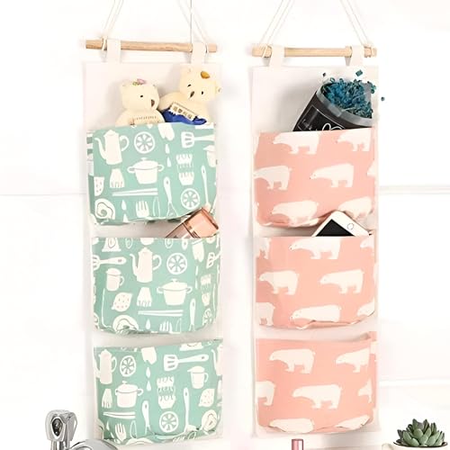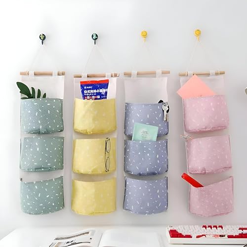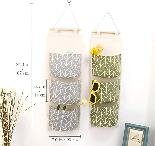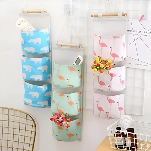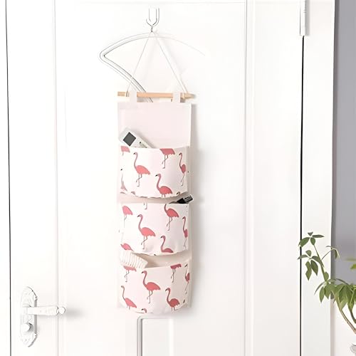 Generic - جيب لجهاز التحكم عن بعد لغرفة النوم - حقيبة كتان متينة مقاومة للماء مثبتة على الحائط مع خطاف خشبي، ثلاثة جيوب بحجم جهاز التحكم عن بعد، مثالية لتنظيم أغراض غرفة النوم فوق الباب، متوفرة بألوان متعددة.