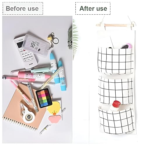 - هيكل من ثلاث طبقات مع ثلاثة جيوب واسعة؛ لتخزين أجهزة التحكم عن بعد والنظارات والمجوهرات ومستحضرات التجميل والشواحن والبريد والمفاتيح وأكثر من ذلك. تصميم مزدوج الجوانب يتيح لك تعليقها على الجدران أو الأبواب أو قضبان الخزانة.
