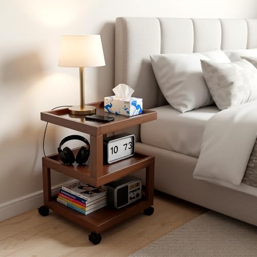 Uand home - طاولات بجانب السرير، طاولة جانبية صغيرة على شكل حرف S، طاولات جانبية خشبية للتخزين لغرفة النوم وغرفة النوم، اثاث غرفة النوم، 40 سم × 40 سم × 56 سم