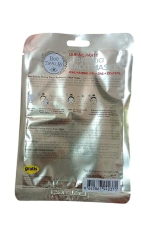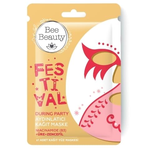 Bee Beauty - قناع ورقي من بي بيوتي فيستيفال أثناء الحفلات مع مستخلص النياسيناميد واليوريا والزنجبيل، 25 مل، للاستخدام مرة واحدة