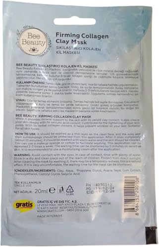 Bee Beauty - قناع طين كولاجين لشد البشرة للاستخدام مرة واحدة مناسب لجميع أنواع البشرة من بي بيوتي، 20 مل