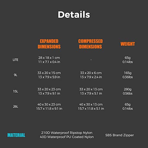 - مثالية للسفر - تتضمن G4 4 قطع: 26L (XLarge) للمعاطف الشتوية والسترات والسراويل. 15 لتر (كبير) للأحذية والجينز والتيشيرتات والشورت. 9L (M) للملابس الداخلية وحمالات الصدر والجوارب والملابس الأصغر/الأرق. حقيبة لايت جير للبطاقات والنقود وكابل البيانات التقنية ومستحضرات التجميل وأدوات الزينة وما إلى ذلك.