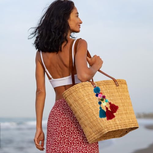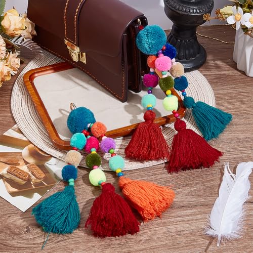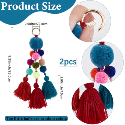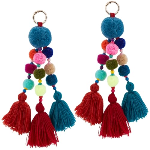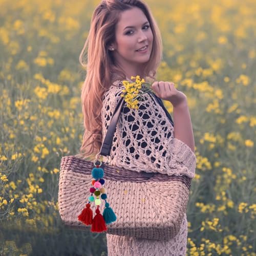 Beebeecraft - سلسلة مفاتيح بتصميم مكرمية بوهيمية دلاية مزينة بشراشيب وكرات من الصوف ملونة قابلة للاستخدام كاكسسوار لشنطة اليد للنساء من بيبي كرافت