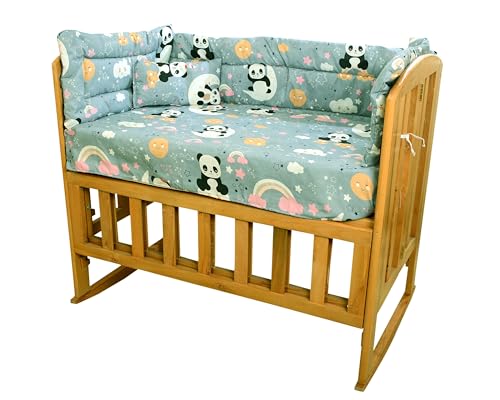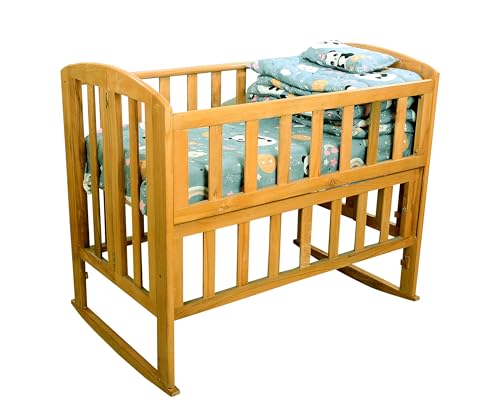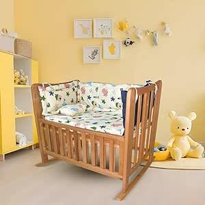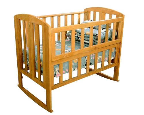 Homz Gallery - سرير أطفال من خشب الزان بـ 3 مستويات وفتحة جانبية لسهولة التوصيل بسرير الأم مع مرتبة هدية مجانية و4 قطع من الجوانب مصنوعة من الفايبر وملاية ومخدة