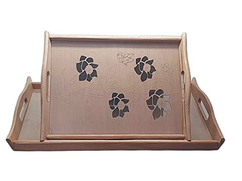 Generic - صينية من خشب الزان مزينة بنقش منحوت مجموعة قطعتين BWTE1102378 مستطيلي