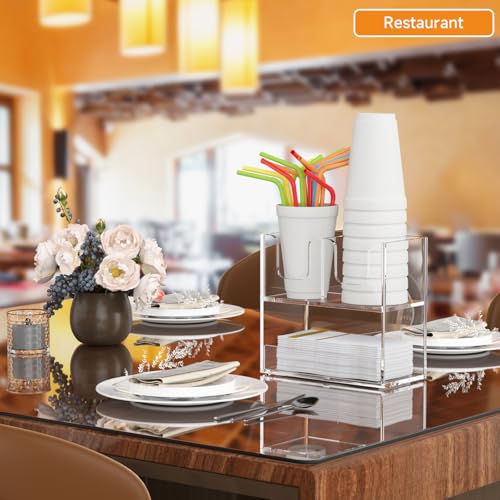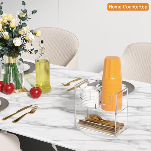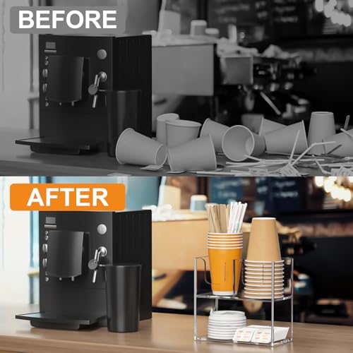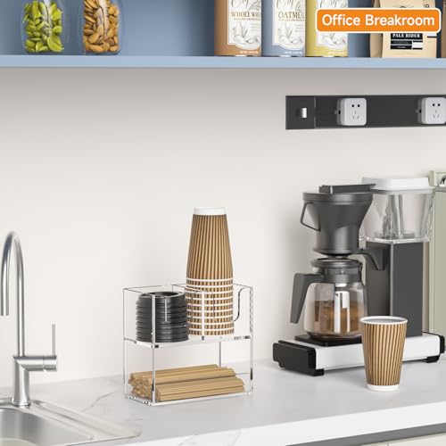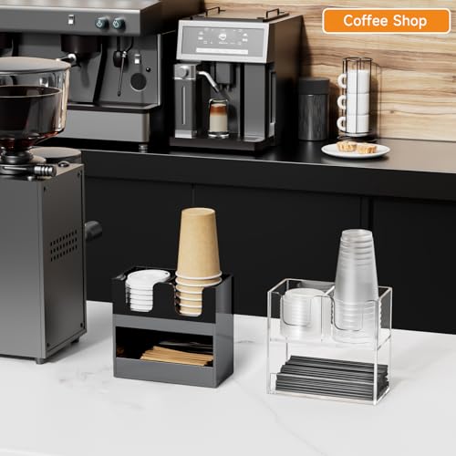 Beego - حامل أكواب قهوة لسطح الطاولة، موزع أكواب اكريليك بطبقتين لتنظيم الأكواب الورقية وغطاء لتخزين التوابل للمطاعم وغرفة الاستراحة والمطبخ والبار من بيجو، مكون من 3 أقسام