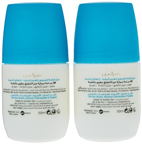 Beesline - مزيل عرق رول أون من بيزلاين برائحة النسيم المنعش للجنسين، سعة 50 مل، يوفر حماية 48 ساعة مع تفتيح وتهدئة البشرة