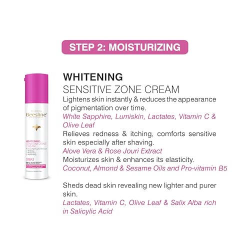 Beesline - كريم مفتح للمناطق الحساسة بسعة 50 مل + غسول مفتح للمناطق الحساسة بسعة 200 مل من بيزلين (عرض 1+1)