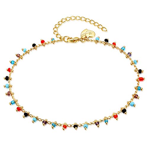 Befettly - بيفتلي خلخال خرز للنساء مصنوع يدويا ومطلي بالذهب عيار 14 قيراط انيق من الخرز لطيف للصيف سوار كاحل بوهو للشاطئ