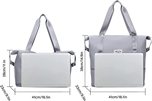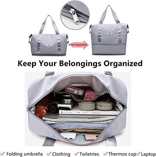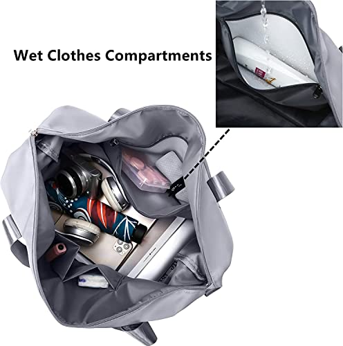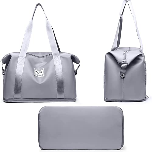 BeFunky - بي فانكي شنطة سفر قابلة للطي بسعة كبيرة، شنطة صالة الالعاب الرياضية خفيفة الوزن مقاومة للماء مع شنطة فصل رطبة وجافة، للسفر والرياضة وصالة الالعاب الرياضية, رمادي, حقائب صالة الألعاب الرياضية، نايلون