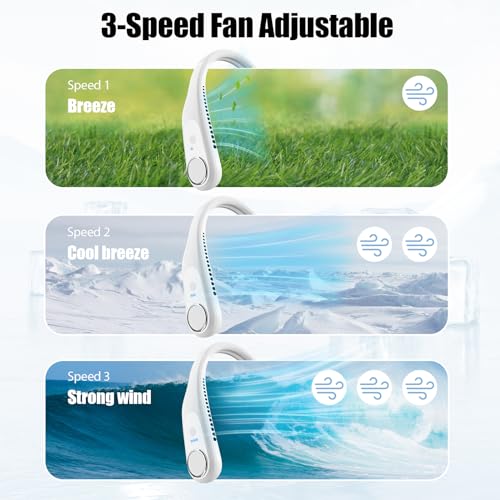 - 【ضوضاء منخفضة، 3 سرعات قابلة للتعديل】مروحة للرقبة بميزة منخفضة الضوضاء ولن تزعجك. توفر مروحة تبريد الرقبة 3 سرعات رياح مختلفة، زر تحكم واحد، اضغط على الزر بشكل متكرر لضبط سرعة الرياح. يوجد ضوء مؤشر أزرق لإظهار مستوى سرعة الرياح الحالي. تستخدم المروحة التي تشبه سماعة الرأس مداخل هواء مزدوجة القناة ومحرك قوي للعمل معًا لتوفير تدفق هواء سريع وجلب الكثير من الهواء البارد إلى وجهك ورقبتك.