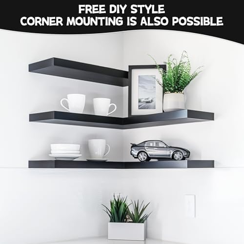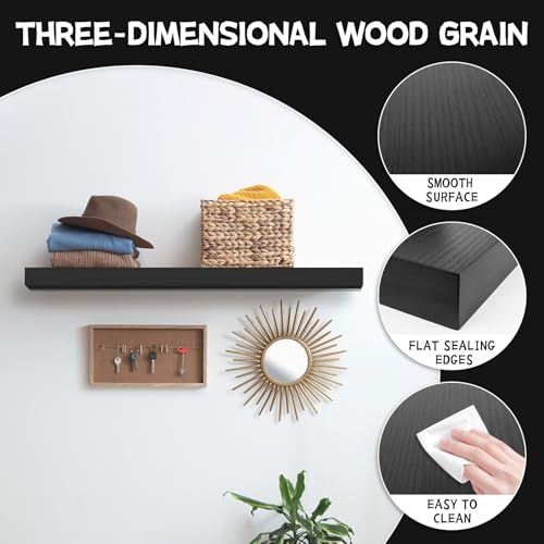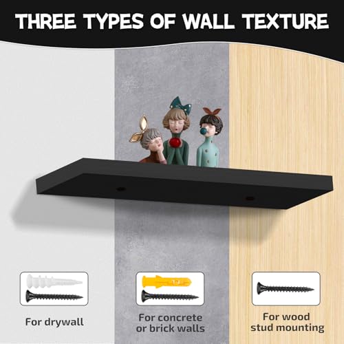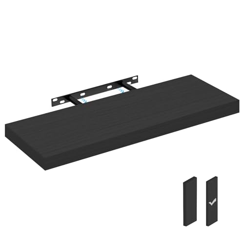 BEHEY - رفوف كتب عائمة للحائط، رف حمام معلق، أرفف بحامل يثبت على الحائط بدعامات غير مرئية للحمام وغرفة المعيشة وغرفة النوم والمطبخ من بيهي بسعة 11.34 كجم - أسود متوسط، 1 قطعة