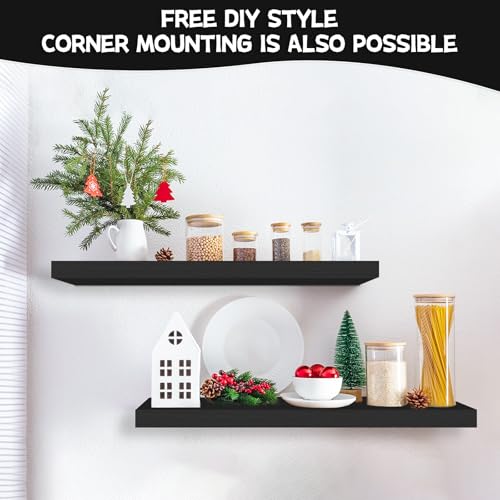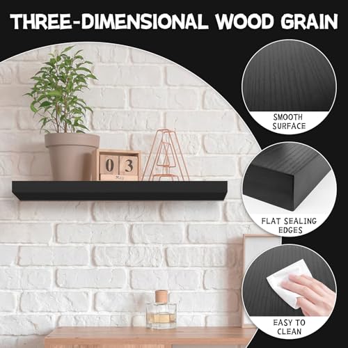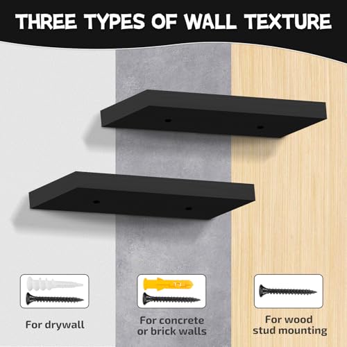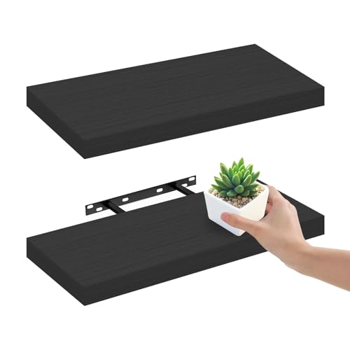BEHEY - أرفف كتب عائمة للجدار، رف معلق للحمام، أرفف مثبتة على الحائط مع دعامات غير مرئية للحمام وغرفة المعيشة وغرفة النوم والمطبخ من بيهي، بسعة وزن 11 كجم - لون أسود