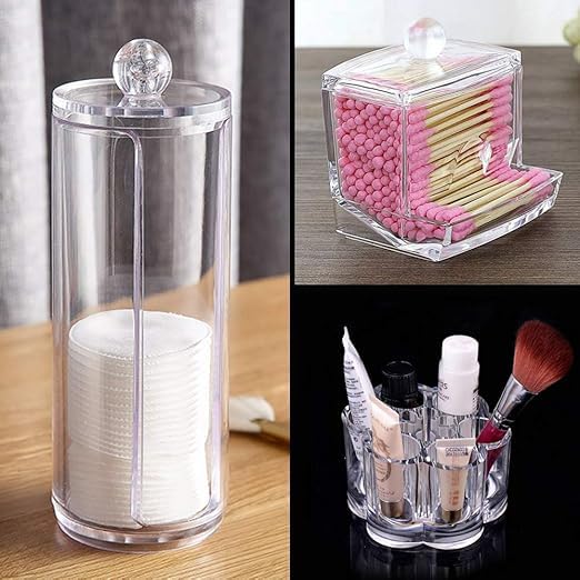 - منظم مكياج اكريليك تركي من بيهوم، 3 قطع، منظم مكياج، علبة مناديل، حافظة للأذن، شفاف.