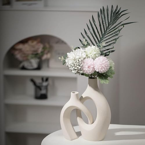 Generic - طقم مزهريات سيراميك بيج مقاس XL لديكور المنزل العصري، مزهريات زهور بوهو عصرية مجوفة لغرفة المعيشة ورف الكتب والطعام وطاولة القهوة، قطعة مركزية (عرض 6.8 انش × ارتفاع 11 انش)