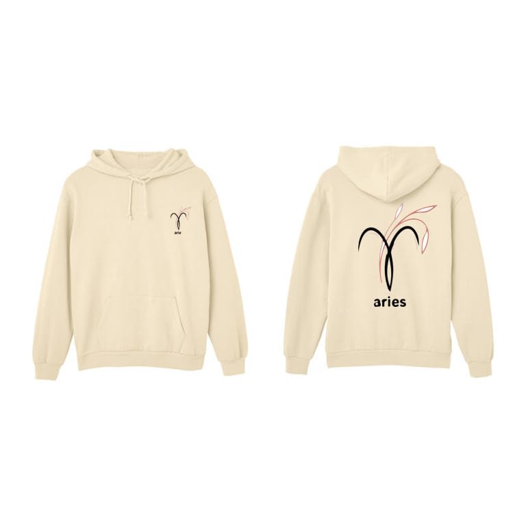 Generic - هودي قطن بيج مع شعار برج الحمل الاسود مقاس (M)